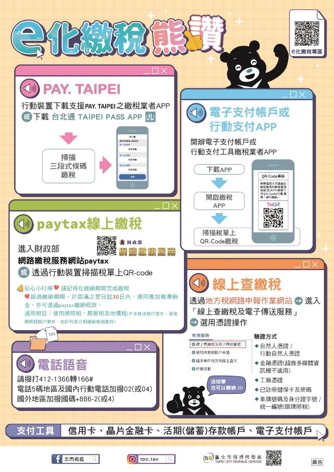 (一)以行動支付工具繳納臺北市114年定期開徵之地價稅。